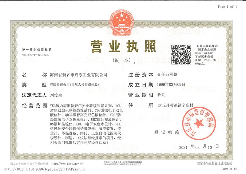 河南省新鄉(xiāng)市啟東工業(yè)有限公司始建于1987年,是專注研發(fā)、生產(chǎn)自動化儀器儀表(主要與壓力容器、鍋爐等容器配套使用)的廠家。主要產(chǎn)品有液位計(jì)(磁敏雙色型、磁翻柱型等)系列、烤包器熄火聯(lián)控裝置系列、壓力容器快開門安全聯(lián)鎖保護(hù)裝置系列、鍋爐報(bào)警器系列。二十多年來,公司產(chǎn)品暢銷國內(nèi)并遠(yuǎn)銷俄羅斯、蒙古與東南亞,深得廣大用戶的信賴和好評。我們多年來致力于自動化儀器儀表的研制生產(chǎn),公司現(xiàn)具有完善的生產(chǎn)、試驗(yàn)、檢測手段和設(shè)備。科技創(chuàng)新、誠信服務(wù),是我們不變的經(jīng)營理念,我們將以強(qiáng)有力的技術(shù)支持及售后竭誠為客戶提供良好的服務(wù)。  2012年我公司成功研發(fā)了KCL系列烤包器熄火聯(lián)控裝置,并于2013年2月2日榮獲中華人民共和國國家知識產(chǎn)權(quán)局辦法的《實(shí)用新型**證書》<**號:2021202257735>該產(chǎn)品廣泛應(yīng)用于唐鋼等大型鋼鐵企業(yè),為烤包器安全作業(yè)提供了有力的保障。  2002年我公司成功研發(fā)磁敏電子雙色液位計(jì)獨(dú)特的高亮度LED紅綠雙色顯示,獲得了專家的首肯和用戶的一致好評。在此基礎(chǔ)上我公司研發(fā)人員十年磨一劍,致力于XQFB-1防爆型磁敏雙色液位計(jì)的研發(fā),于2013年12月27日由國家防爆電器產(chǎn)品質(zhì)量監(jiān)督檢驗(yàn)中心檢驗(yàn)合格并頒發(fā)防爆合格證書<編號:cnex19.0883>。該產(chǎn)品性能得到了充分的發(fā)揮,廣泛應(yīng)用于含有Ⅱ類A·B級T1-T4組可燃?xì)怏w或蒸汽與空氣混合形成的爆炸性混合物的0區(qū)、1區(qū)危險(xiǎn)場所。連接用戶DCS或PLC系統(tǒng)實(shí)現(xiàn)遠(yuǎn)距離集中顯示和控制,從而實(shí)現(xiàn)節(jié)能、數(shù)字化管理。為用戶增加了一定的經(jīng)濟(jì)效益和社會效益,。2014年公司成功申請了夢潤儀表的logo,新的品牌新的形象,夢潤儀表是啟東的LOGO, 歡迎新老用戶前來洽談合作。  我們一如既往地注重科研的投入,憑借產(chǎn)品的不斷更新、加大科技含量,進(jìn)一步拓展市場。我們相信品質(zhì)成就未來,以過硬質(zhì)量、優(yōu)惠價(jià)格、完善的售后服務(wù)熱忱歡迎廣大客戶來我司視察指導(dǎo)、洽談業(yè)務(wù);精誠合作,共創(chuàng)輝煌!